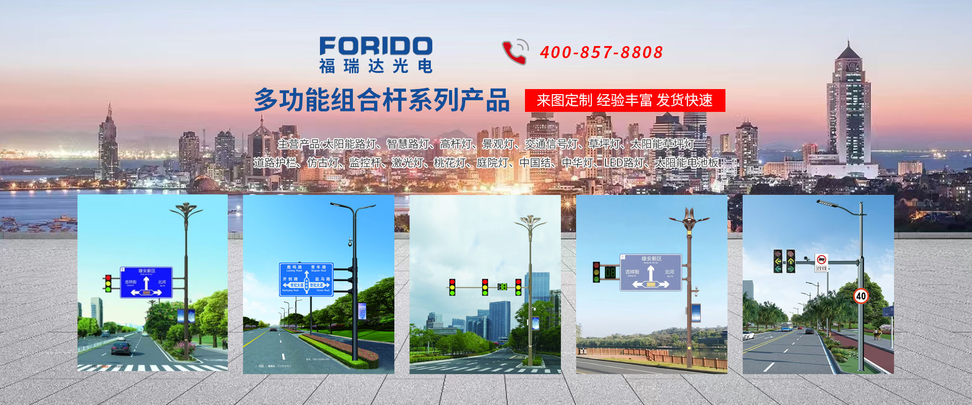 揚州福瑞達光電科技有限公司位于淮左名都歷史文化名城、中國路燈制造基地揚州市北郊菱塘工業園,公司占地面積76000平方米,注冊資金10518萬元,擁有高級技術嫻熟的員工280多人,擁有大型折彎機、激光切割、數控注塑機、壓鑄機、自動埋弧焊、氣焊、彩色粉末靜電噴塑等大型自動化設備,我公司是一家集設計、研發、生產、銷售、施工安裝服務為一體的戶外交通照明產品制造商,主要生產智慧路燈、太陽能路燈、LED路燈、高桿燈、景觀燈、交通信號燈、交通標志牌、通信鐵塔、路跨鋼結構、公交站臺、太陽能光伏組件、景點亮化、樓宇亮化工程的設計施工等。公司秉承開拓創新、銳意進取、精誠服務的企業精神,堅持以“誠信為本、技術為先、服務是金”的合作理念,我們憑借先進的制造工藝、優質的產品質量、合理的市場價格和完善的售后服務贏得了廣闊的市場和客戶的信賴?! ∥夜疽淹ㄟ^ISO9001質量體系認證、ISO14001環境管理體認證,CQC產品認證,中國節能產品認證,通過“CCC”強制性產品認證,具有市政總承包,照明,交安,設計等資質···